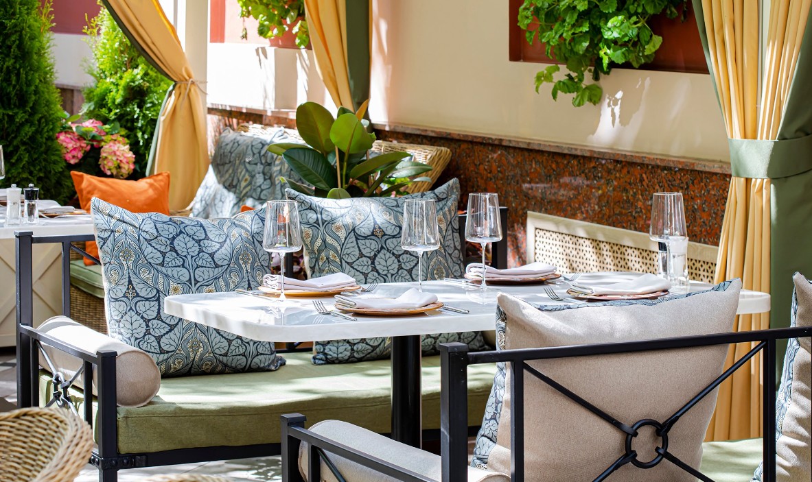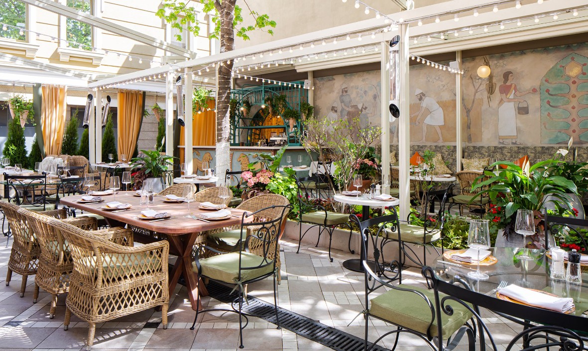 เทอร์เรซที่ใหญ่ที่สุดอยู่ที่คฤหาสน์บน Maly Ivanovskiy Lane ซึ่งในโหมดปกติสามารถรองรับแขกได้ถึง 90 คน และในรูปแบบจัดเลี้ยงรองรับได้ถึง 120 คน พื้นที่นี้มักจัดโชว์และคลาสทำอาหารที่ใช้การปรุงด้วยไฟเปิด มีดนตรีสดในช่วงสุดสัปดาห์ และบรรยากาศที่ทำให้เวลาเหมือนเดินช้าลง