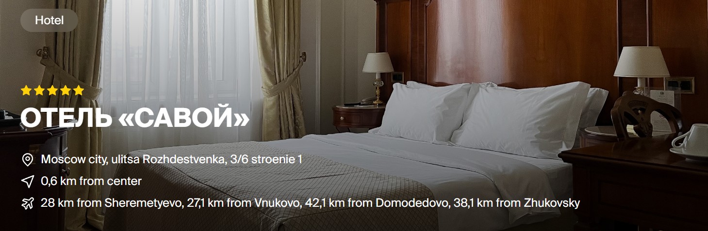 Hotel Savoy Moscow Address: 3/6 bld.1 Rozhdestvenka str., Moscow, 109012, Russia
