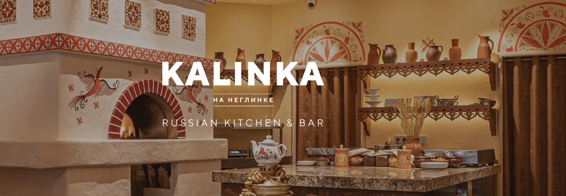เช่นเดียวกับร้านอื่น ๆ ของมิคาอิล เปตูคอฟ Kalinka on Neglinka ถูกออกแบบให้เป็นสถานที่ที่ให้ความรู้สึกอบอุ่น เป็นกันเอง สบายใจ และจริงใจ